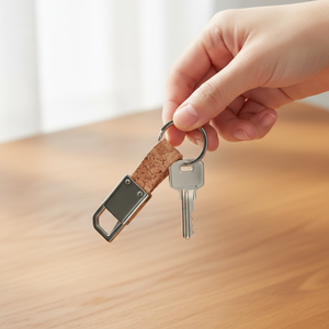 – Metal keychain with cork material strap
